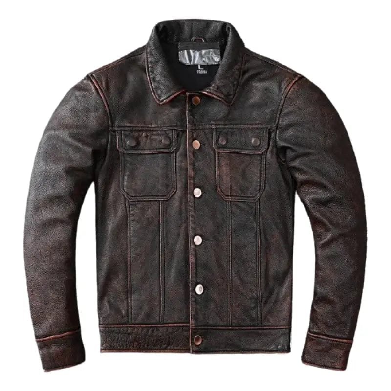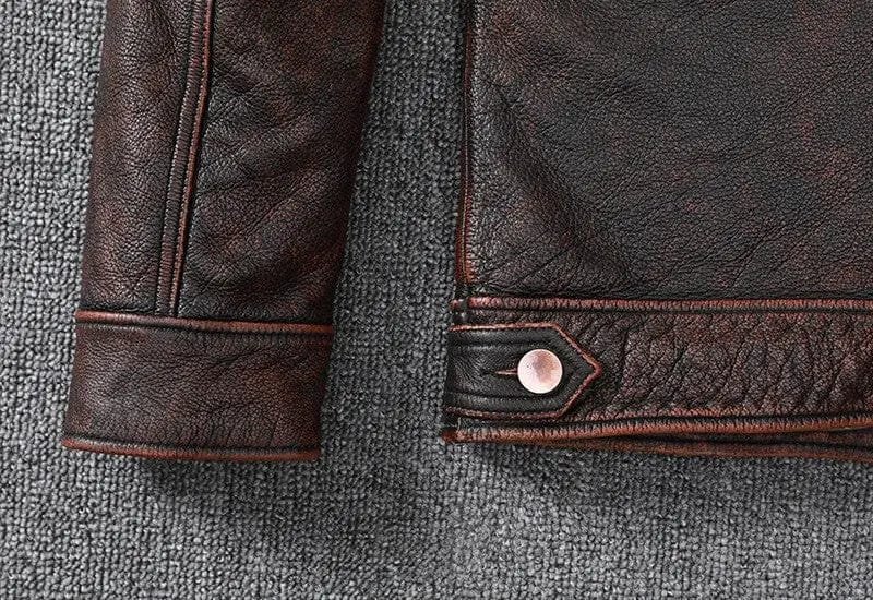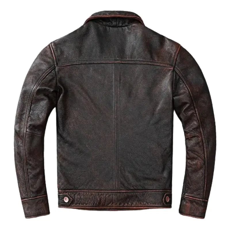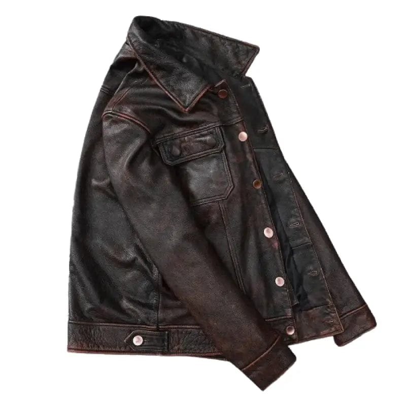 Blouson vintage en cuir marron pour homme